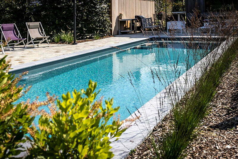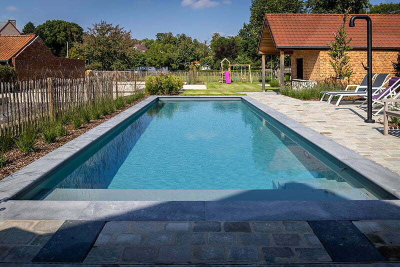 Dat een tuin die geschikt is voor opgroeiende kinderen er ontzettend stijlvol uit kan zien, bewijzen we met dit project in Lanaken. De beplanting en kasseiverharding rond het zwembad geven deze tuin een stijlvol, landelijk karakter. Daarbij zorgen minimalistische details als de buitendouche en design afvoergoot voor een hedendaagse touch.