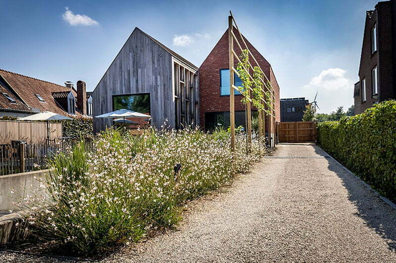 Met kassei- en grindverhardingen, veel grassen en relatief weinig beplanting is deze tuin ontzettend onderhoudsvriendelijk, maar toch lekker groen. Doordat de eigenaars weinig omkijken hebben naar het mooi houden van hun tuin, hebben zij extra tijd om lekker te genieten van het heerlijke zwembad en de spelende kinderen achter in de tuin.