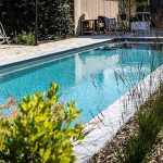 Vanuit het ruime vierkante raam in de woning kijkt men uit op het prachtige zwembad. Het rechthoekige zwembad heeft fraaie granieten randstenen die terras en zwembad met elkaar verbinden. De inlooptrap met het loungeplateau geeft het zwembad een luxe uitstraling. Het zwembad is voorzien van een warmtepomp met hoog rendement, zodat het zwemwater het hele jaar door een geschikte temperatuur heeft. Door middel van de vorstbeveiliging blijft het zwembad ook in de winter gereed voor gebruik.